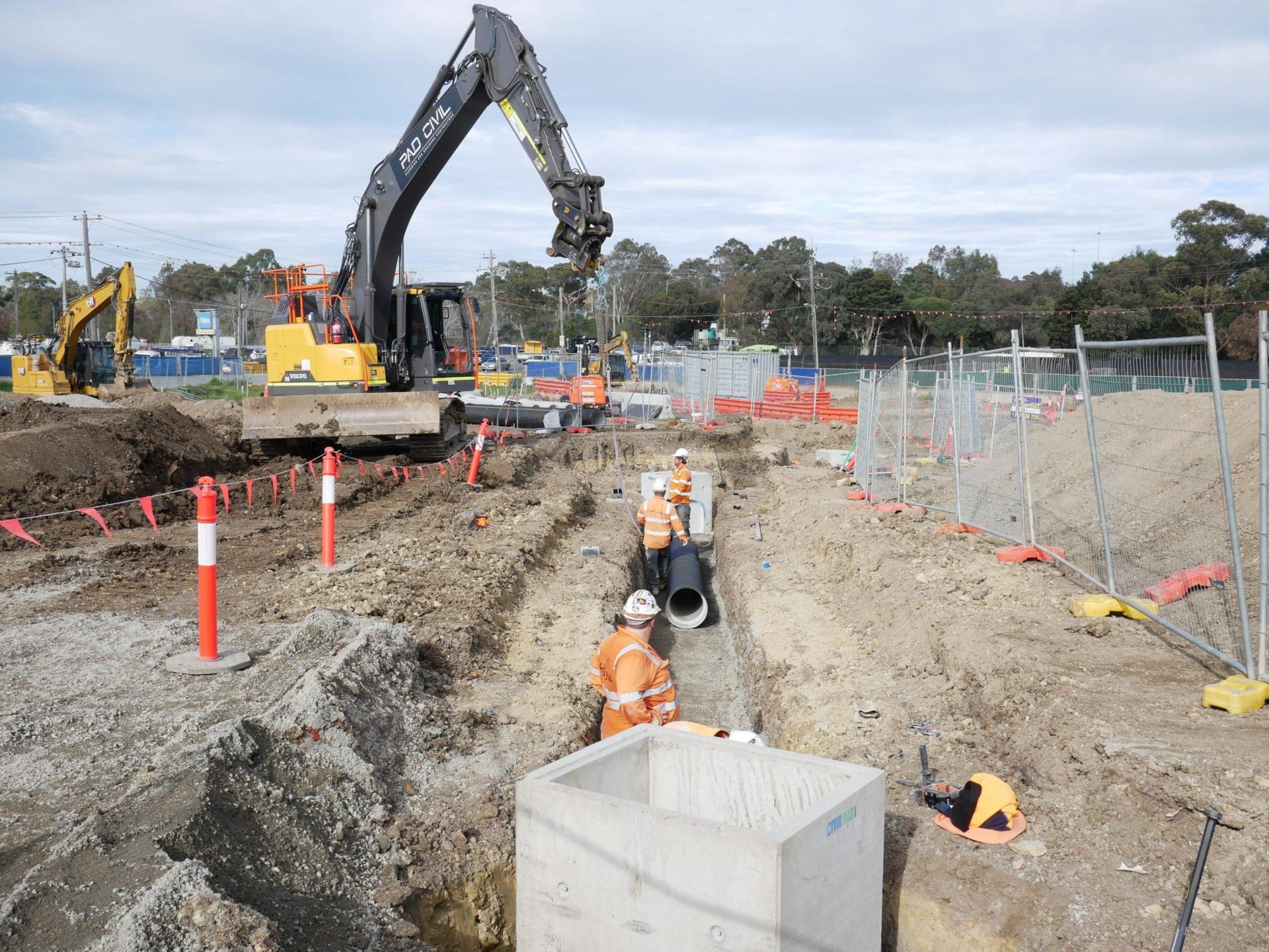 Vinidex partnered with Spark to implement the first trial in Australia of StormFLO® – a PE twin wall drainage system incorporating recycled material, and installed under a trafficable road pavement, aiming to demonstrate the suitability of a sustainable engineered solution for the Department of Transport and Planning (DTP) road network.