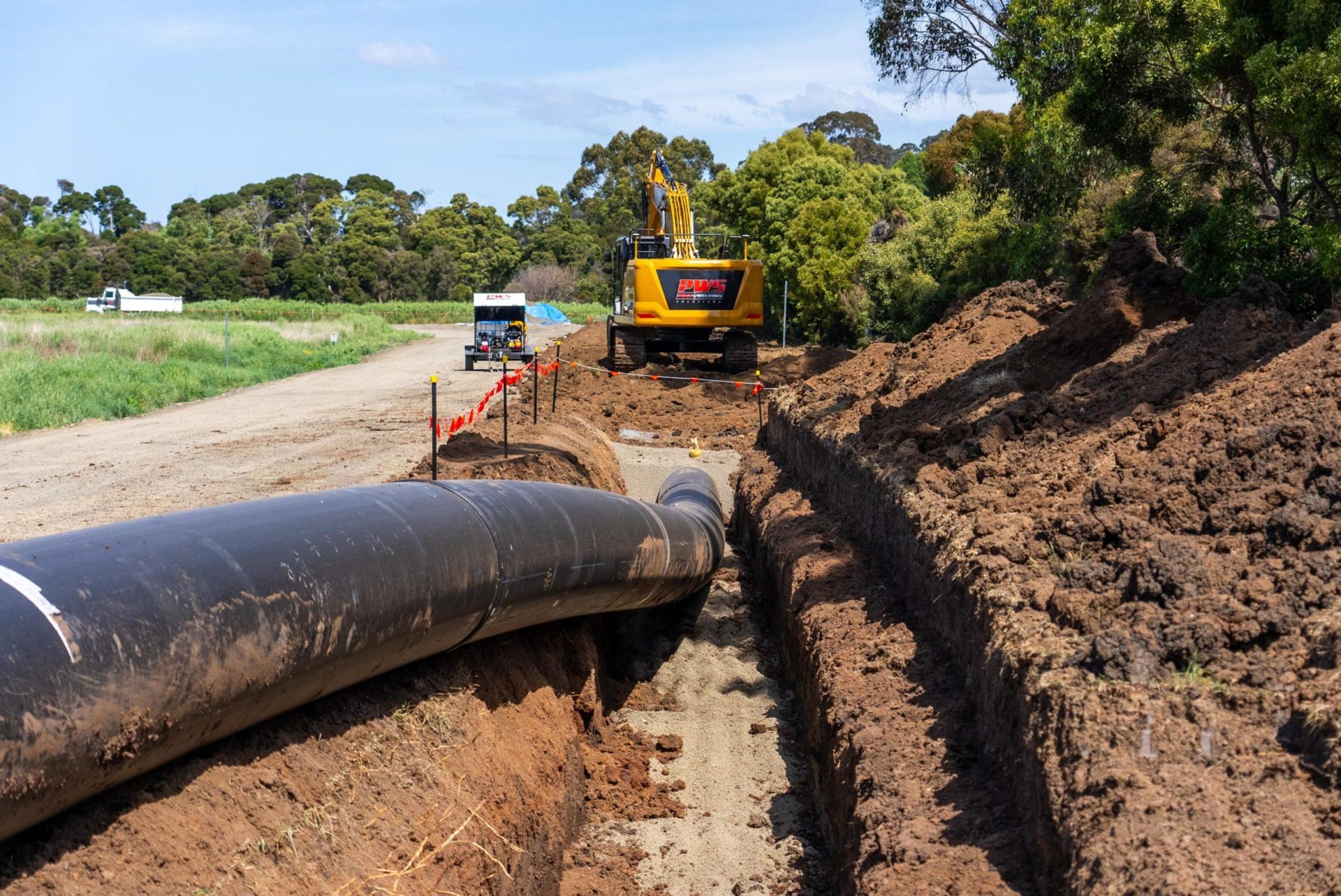 The construction works involved installing the large pipes through a combination of land-based trenching and drilling beneath the estuary riverbed, with some sections reaching depths of up to 45 metres. The pipeline was one of the largest infrastructure projects of its kind in the Southern Hemisphere.