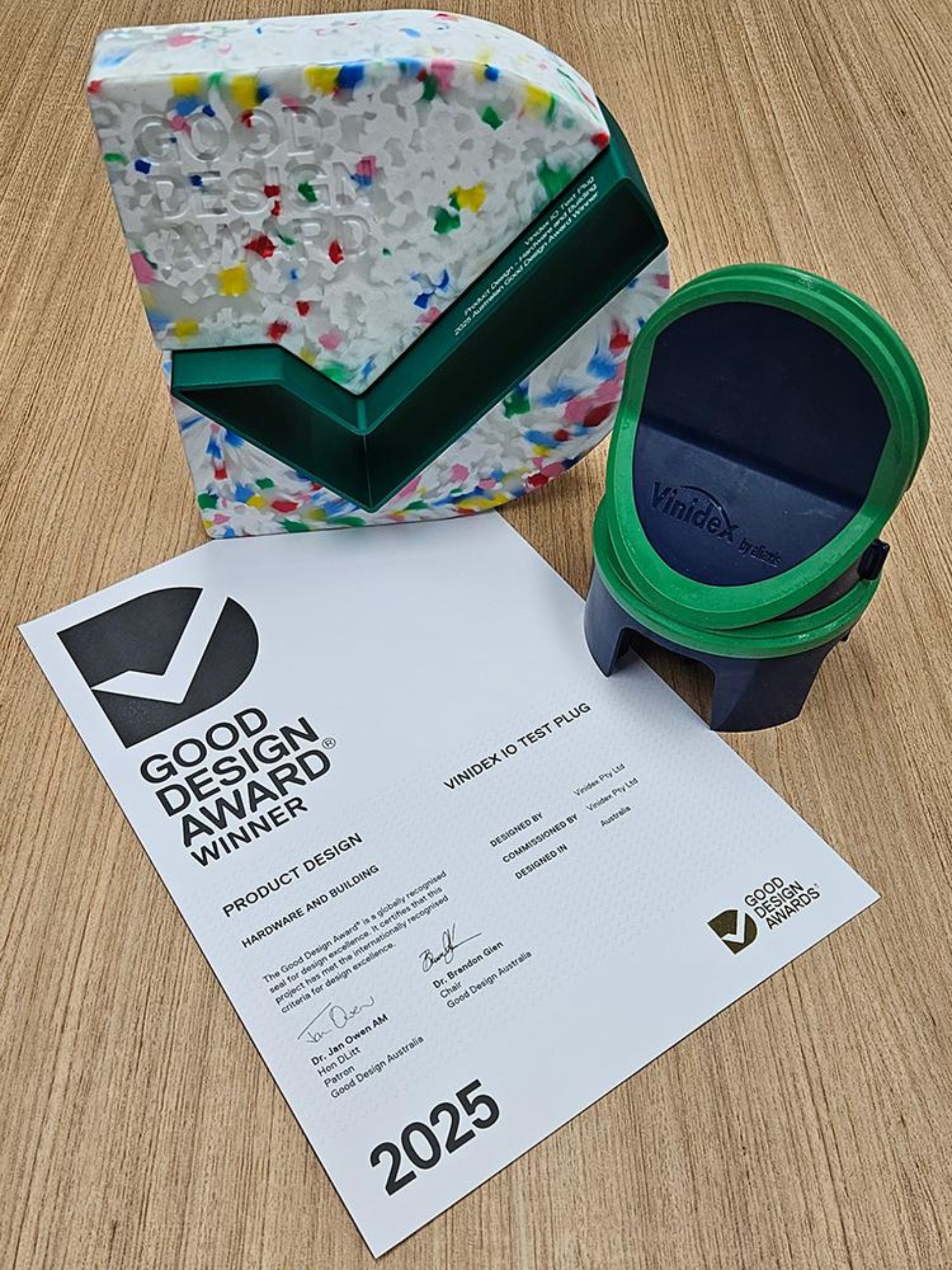 Vinidex is proud to announce that the IO Test Plug has won a 2025 Australian Good Design Award in the Product Design – Hardware and Building category, recognising its outstanding contribution to design innovation in the built environment.
