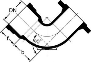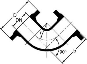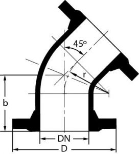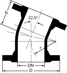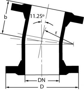 Vinidex Code | Nominal Size DN (mm) | Angle (degrees) | Radius (r) | Length B (mm) |