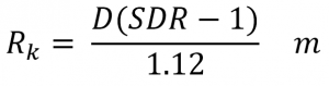 The minimum radius to prevent kinking (Rk) may be calculated by: